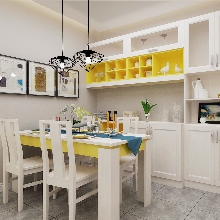 選用湖藍(lán)和明黃兩種裝飾色點(diǎn)綴空間,色彩感強(qiáng),明亮鮮艷,適合年輕的群體。整體設(shè)計(jì)輕硬裝重軟裝,大量選用定制家具,更好的利用空間,個(gè)性化定制。
