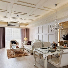 紫羅蘭色與白色搭配出清新浪漫氛圍。同時(shí)又不失高雅。家裝家具一體價(jià):14萬。