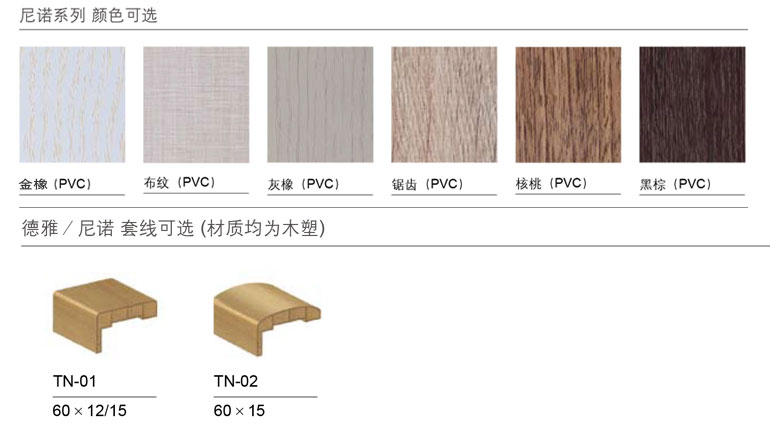 | 可選顏色 | 金橡、布紋、灰橡、鋸齒、核桃、黑棕 |