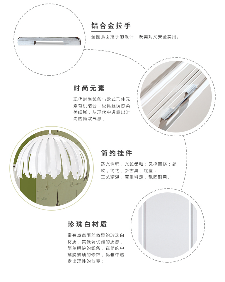 | 細(xì)節(jié)描述 | 簡約不等同于簡單,任何一個細(xì)節(jié)都是獨具匠心的藝術(shù)凝聚,就像白光蘊(yùn)藏七色,露珠照出世界,而樹葉演繹四季。陽光沉淀出美麗的色彩,相映著心中的喜悅與悸動——輕輕一躍,就能沖進(jìn)明天的幸福里。 |