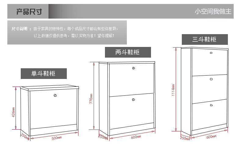 | 尺寸說明 | 由于家具是組裝產(chǎn)品,每個成品尺寸都有可能存在細微差異,需以實物為準。 |