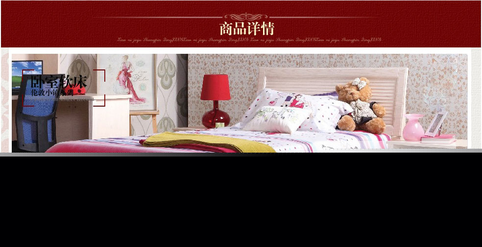 | 規(guī)格 | 床頭:270*128*927mm 床體:2035*1260*323mm 床墊:1200*2000*200mm 排骨架:1200*2000*50mm 衣柜:908*533*2075mm 字臺:1200*1080*1995mm 床頭柜:558*401*448mm |