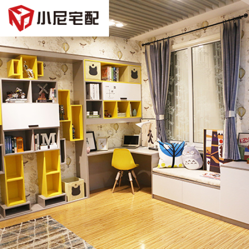 | 細(xì)節(jié)描述 | 超酷的變形金剛組合,使整個(gè)兒童房空間充滿了童趣,在裝飾空間的同時(shí)也起到了收納的作用。轉(zhuǎn)角書桌滿足了小朋友的學(xué)習(xí)空間,弧形臺(tái)面不僅美觀,又避免了小孩的磕磕碰碰。坐臺(tái)和書桌結(jié)合在一起,家長可以在旁邊陪同學(xué)習(xí),還可以與孩子互動(dòng)玩樂。 |