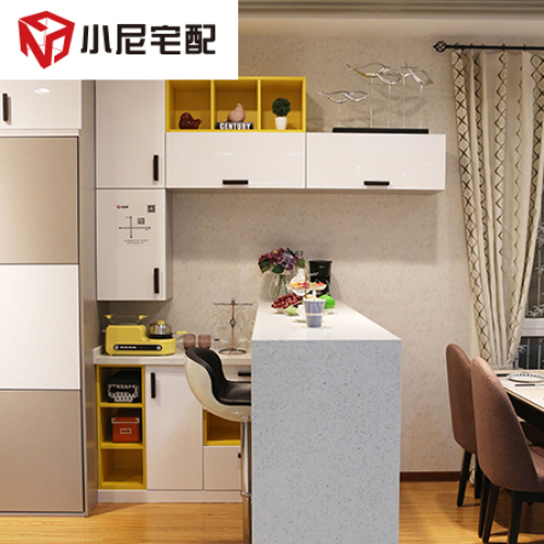 | 細(xì)節(jié)描述 | 餐廳定制了大容量餐邊柜,風(fēng)格完整統(tǒng)一,在狹小的空間用組合餐柜餐臺(tái)形成盡可能大的收納力,空間最大利用化 。針對(duì)小戶型的特別設(shè)計(jì),讓餐邊柜容量與櫥柜不相上下,還可以用來(lái)擺放需要展示的餐具。坐臺(tái)可以做三個(gè)人,下方和背面有一個(gè)收納的空間。餐臺(tái)的收納功能強(qiáng)大。 |