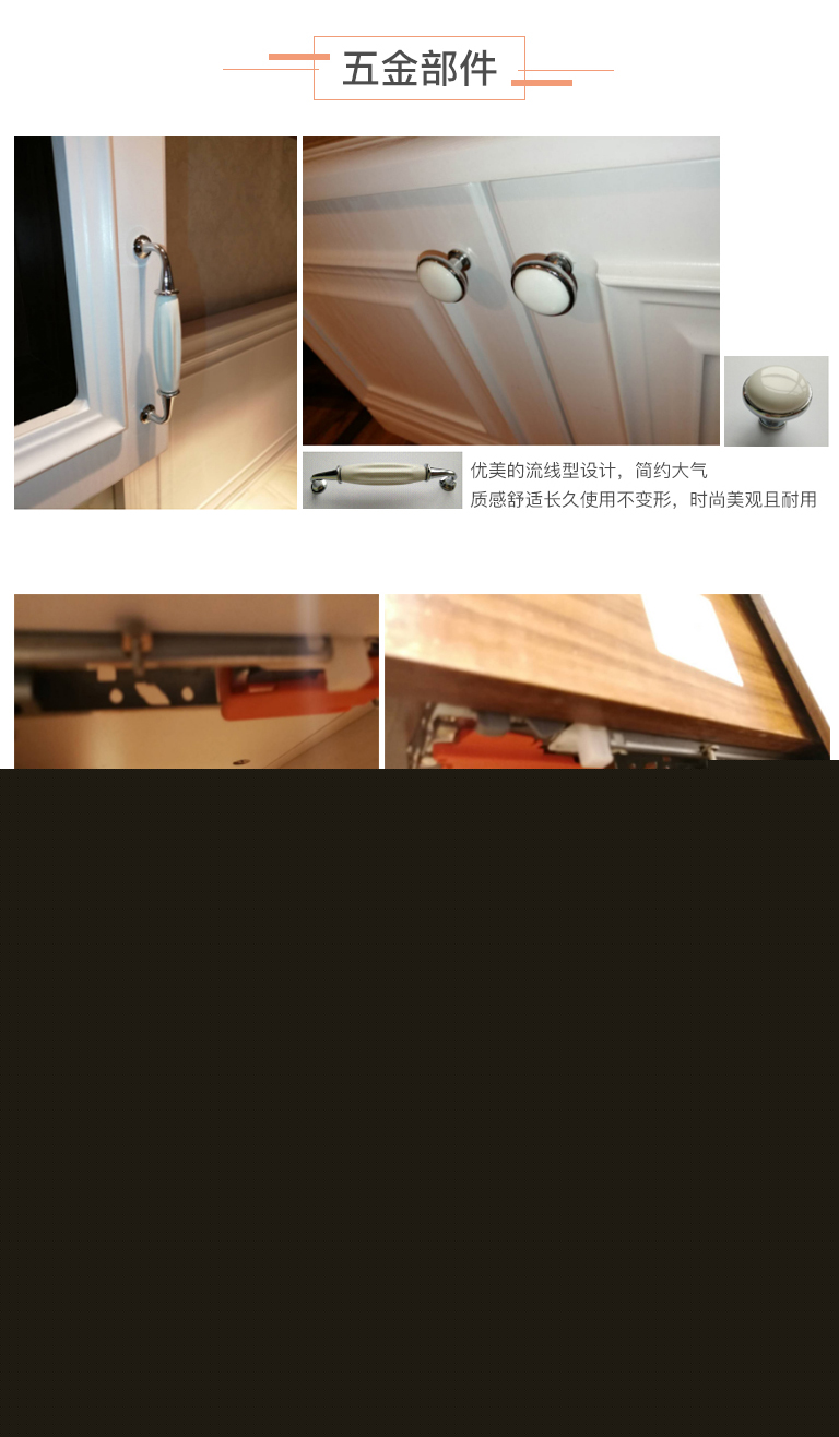 | 產(chǎn)品特點 | 強調一種優(yōu)雅、含蓄、內斂的生活態(tài)度。在保留簡約歐式氣息的前提下將原來傳統(tǒng)的復雜雕花與現(xiàn)代元素相結合,締造出一種全新“簡約歐式風格”。 |