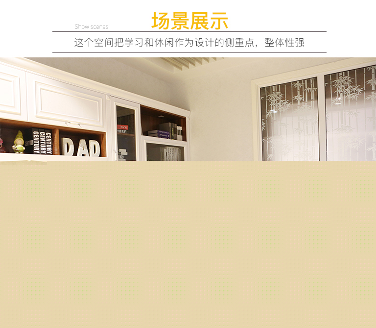 | 細節(jié)描述 | 青少年房是孩子成長與發(fā)展的私密空間,這個空間把學(xué)習(xí)和休閑作為設(shè)計的側(cè)重點??茖W(xué)的角度設(shè)計讓孩子學(xué)習(xí)更加輕松方便,弧形臺面美觀安全。衣柜可以很好的放置衣物,坐塌方便孩子與他人的交流和娛樂活動。床清新活波,符合青少年健康陽光的生活心態(tài)。 |