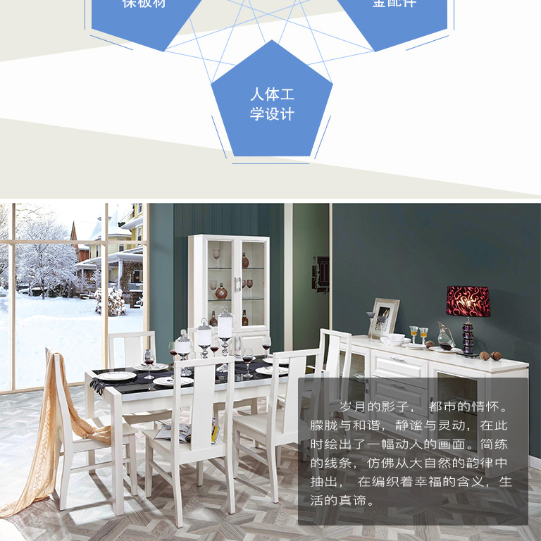 | 細節(jié)描述 | 一桌四椅,搭配多功用的餐邊柜,讓生活更上一個層次! |