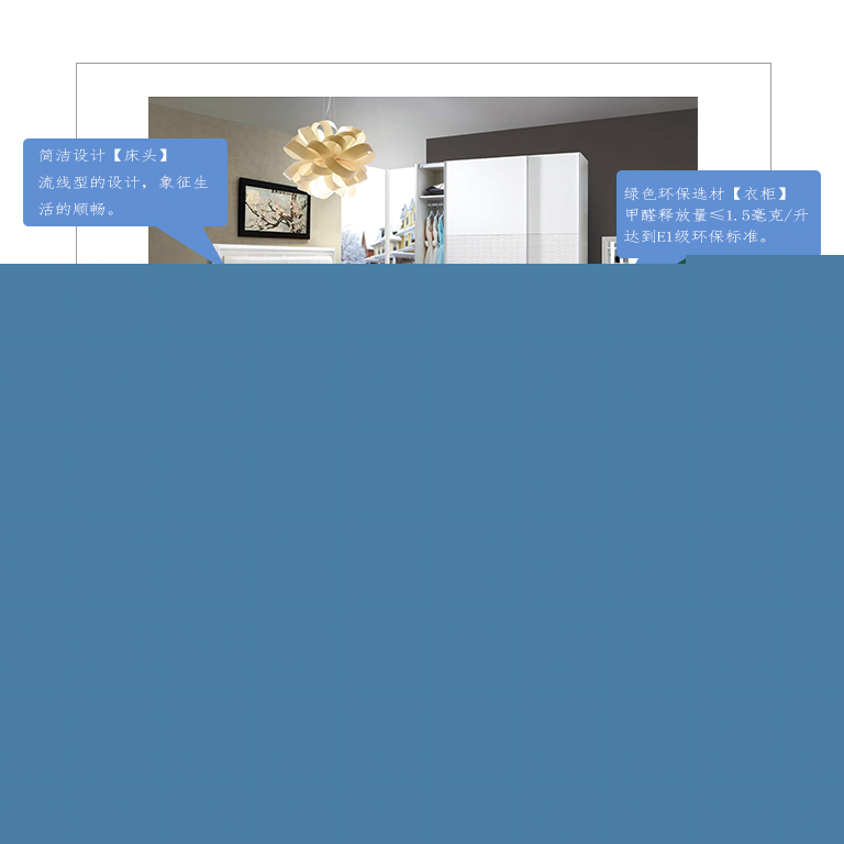 | 規(guī)格 | 外掛門衣柜:2000×605×2250mm、床頭柜:552×400×477mm、軟床:2103×1910×360mm、床墊:1800×2000×260mm、臥房電視柜:1880×450×415mm、妝臺:1100×400×760mm、妝凳:400×300×420mm |