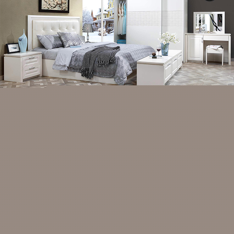| 商品清單 | 外掛門衣柜1件、床頭柜2件、軟床1件、床墊1件、梳妝臺1件、梳妝登1件、臥房電視柜1件 |