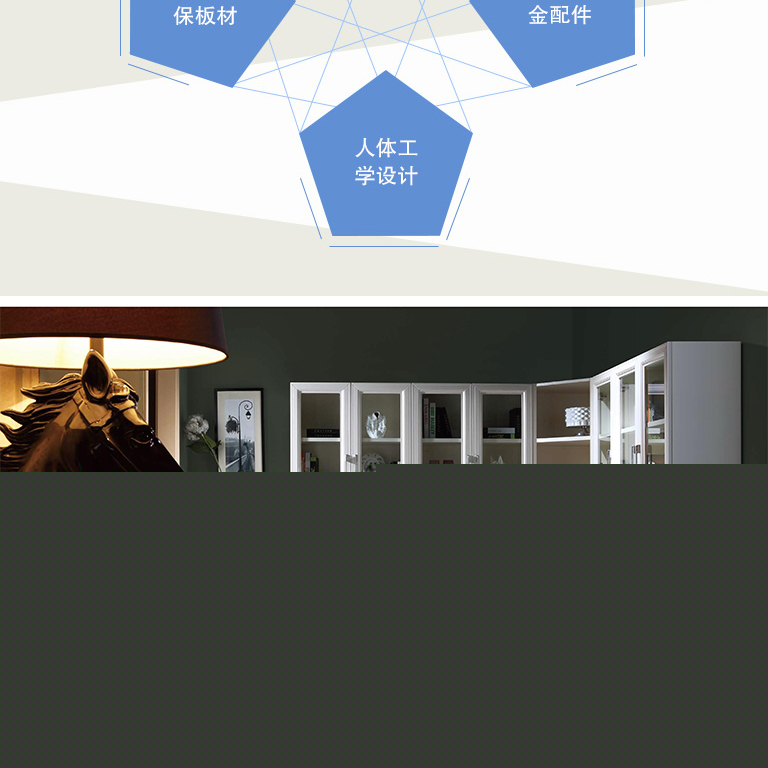 | 細(xì)節(jié)描述 | 展示主人的收藏藝術(shù)。通過局部鏤空封閉,在視覺上更具有變化性,營造出精致高雅的書房氛圍。 |