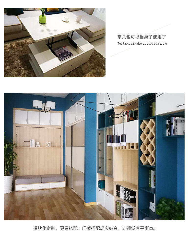 設計師將電視柜、書柜、展示柜、儲物柜等合為一體,再配上模塊化設計手法,大模塊中包含著小模塊,可以不受空間限制,自由組合,隨意中遵循著規(guī)律。