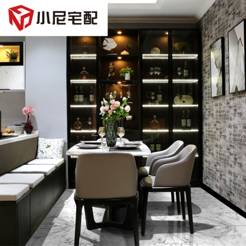 | 產(chǎn)品特點(diǎn) | 餐廳定制了大容量餐邊柜,風(fēng)格完整統(tǒng)一,在狹小的空間用組合餐柜餐臺(tái)形成盡可能大的收納力,空間最大利用化 。針對(duì)小戶(hù)型的特別設(shè)計(jì),讓餐邊柜容量與櫥柜不相上下,還可以用來(lái)擺放需要展示的餐具。坐臺(tái)可以做三個(gè)人,下方和背面有一個(gè)收納的空間。餐臺(tái)的收納功能強(qiáng)大。 |