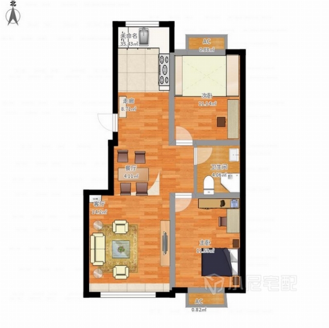設(shè)計(jì)方案二,不同的色彩不同的格局,同樣的面積,體現(xiàn)不同的風(fēng)格