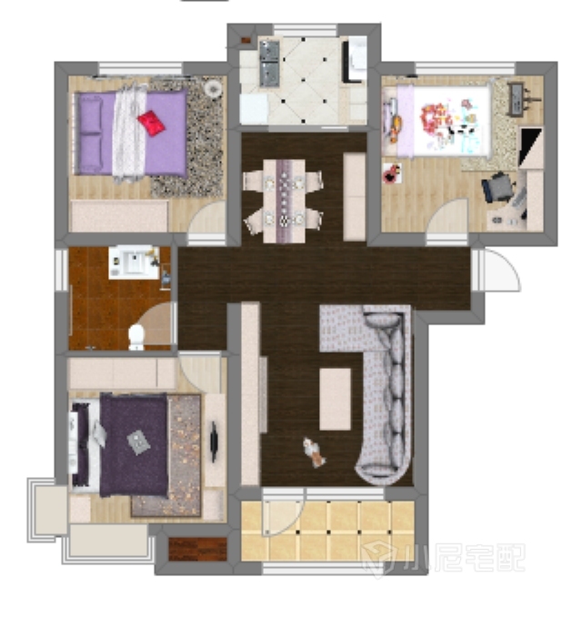 整個臥室比較溫馨,紫色床和窗簾彰顯出一種清新淡雅的氣氛,更有家的感覺。