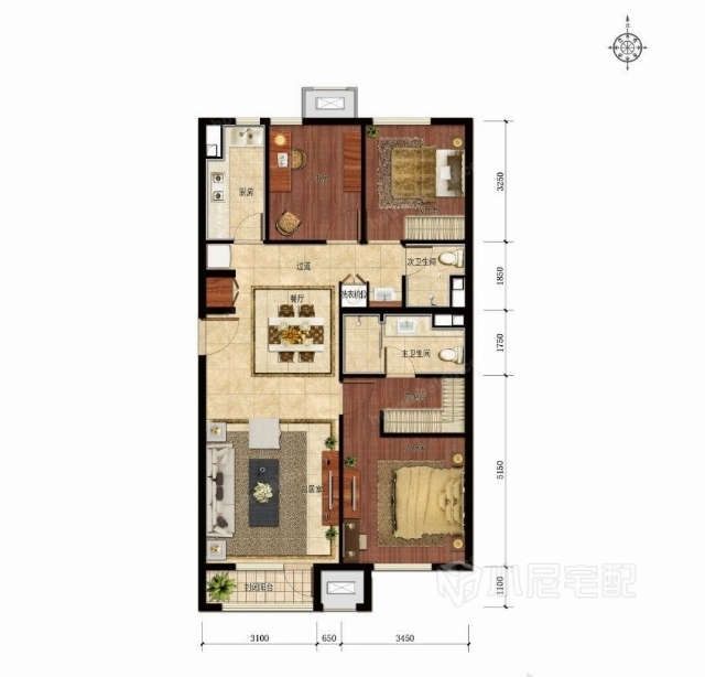 一塊地毯,便簡簡單單地劃分了客廳與餐廳。