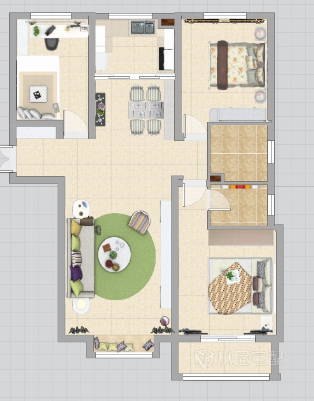 客廳采用了綠色的地毯,讓空間頓時明亮起來,小小的飄窗正好把空間充分利用了起來。
