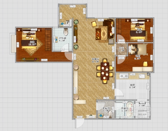 色彩應以統(tǒng)一、和諧、淡雅為宜,對局部的原色搭配應慎重,穩(wěn)重的色調(diào)較受歡迎,本例主要運用到木材質(zhì),張顯簡樸大方之氣。