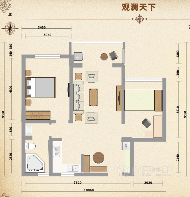 餐廳區(qū)采用卡座形式既能減少空間的浪費(fèi),卡座下面又能增加收納的空間