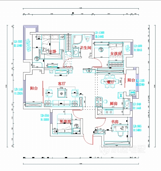 清新海藍(lán):明快純凈的天空顏色,讓臥室整體變得非常得寧?kù)o淡定。但是全部用藍(lán)色未免單調(diào),因此床品、地毯、窗簾等布藝都選用了具有豐富圖案的款式。