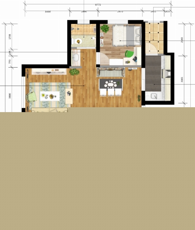 沙發(fā)背景墻用軟包和木質混合,軟硬搭配