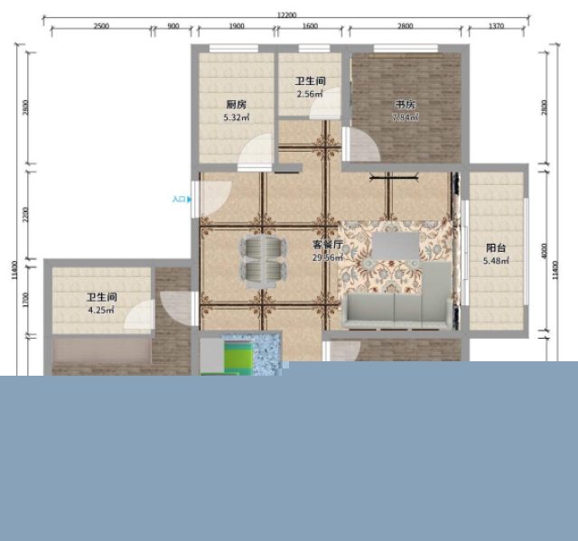客廳選用的是簡歐設(shè)計,使用深胡桃柜體和白木紋門板套色,門廳鞋柜和餐邊柜